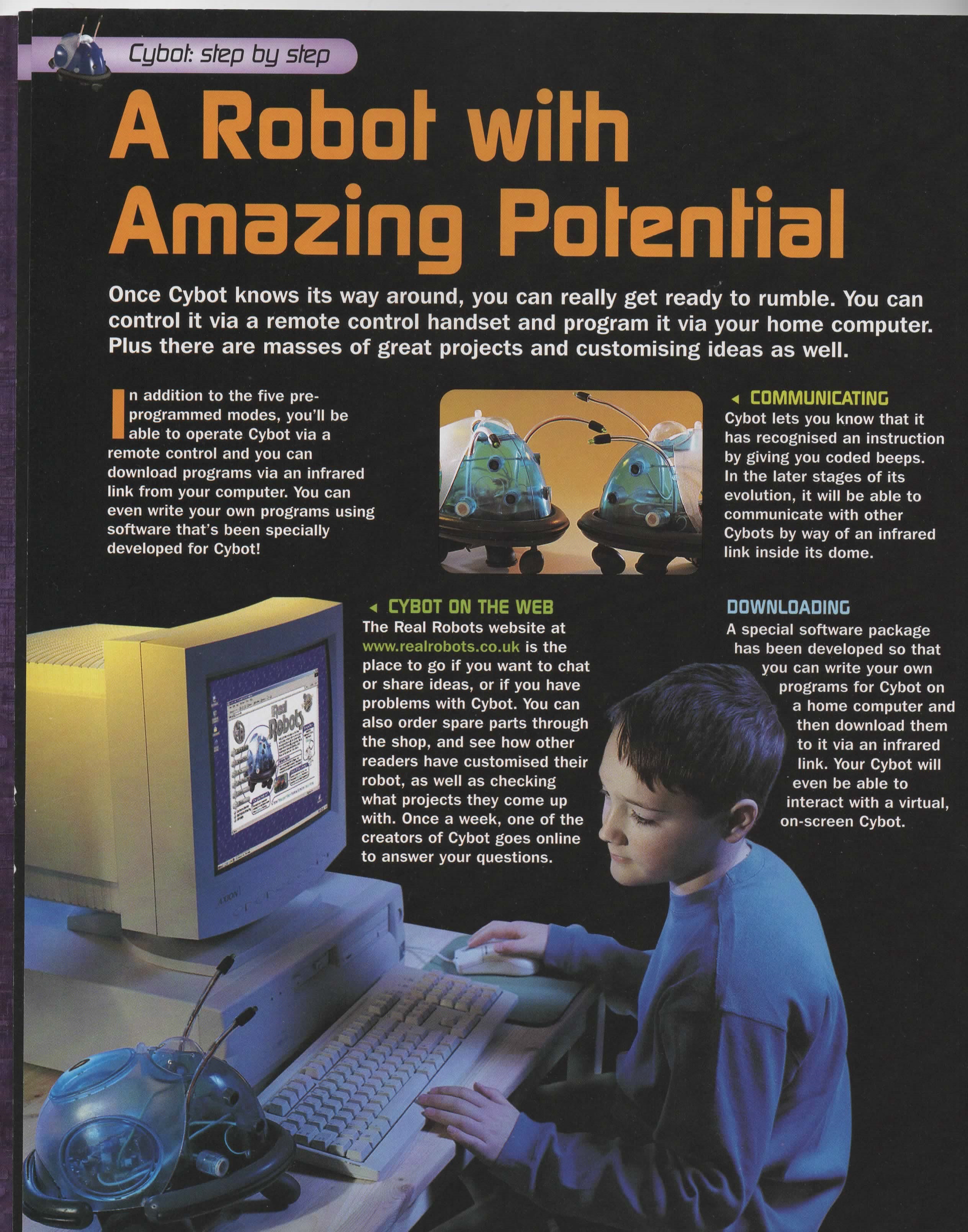 Cybot is a Kit Robot that came with a fortnightly magazine called "Ultimate Real Robots" starting in 2001. The first issue came with a VHS tape that explained what it was all about. I found this copy of the tape uploaded to YouTube.